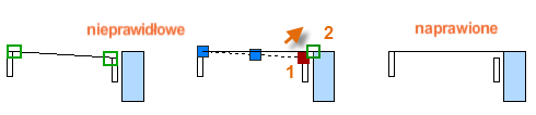 Po wybraniu obiektu bez uruchamiania polecenia zostają wyświetlone uchwyty. Uchwyty przydają się często do edycji światła. Poniższa linia została na przykład przypadkowo przyciągnięta do niewłaściwego punktu końcowego. Można wybrać tę nieprawidłowo ustawioną linię, kliknąć jej uchwyt, a następnie kliknąć w celu określenia poprawnego położenia.