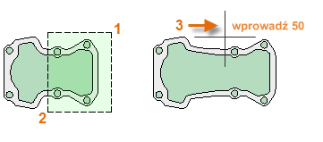 W przypadku polecenia UTNIJ wykonywane są te same czynności, z tą różnicą, że po wybraniu obiektów można wybrać części do ucięcia.