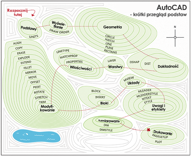 Witamy w podręczniku AutoCAD — krótki przegląd podstaw, w którym opisano podstawowe polecenia niezbędne do tworzenia rysunków 2D w programach AutoCAD lub AutoCAD LT.