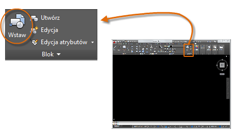 Zazwyczaj każdy z tych bloków jest jednym plikiem rysunku, najczęściej zapisanym w folderze zawierającym podobne pliki rysunku. Aby wstawić blok do bieżącego pliku rysunku, należy użyć polecenia WSTAW (lub wpisać I w oknie polecenia).