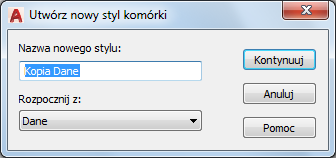 Przywraca okno dialogowe Nowy styl tabeli, w którym można zdefiniować nowy styl komórki.
