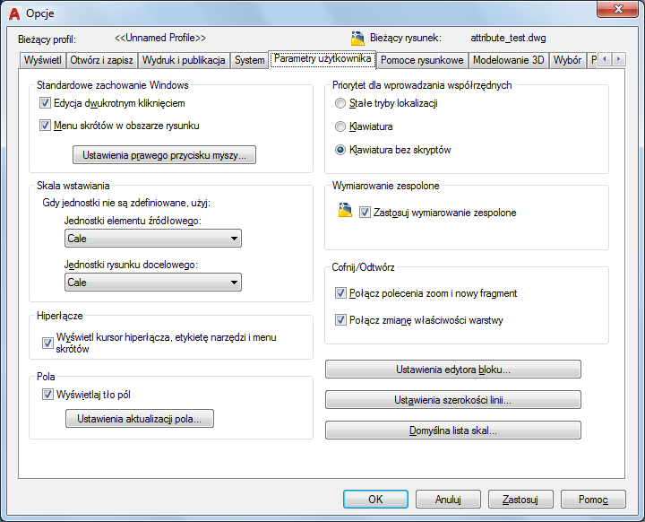 Określa domyślną skalę bloków i rysunków wstawianych do rysunku.