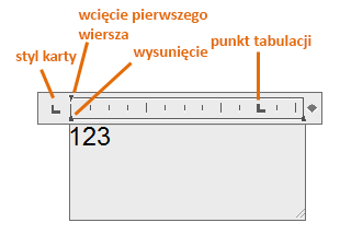 - Przesunięcie. Przeciągnij istniejący tabulator w nowe położenie na linijce.
