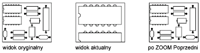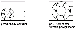 Widok można zmniejszać i zwiększać za pomocą polecenia Zoom, które działa podobnie jak opcja przybliżania i oddalania w aparacie fotograficznym. Użycie funkcji ZOOM nie powoduje zmiany bezwzględnej wielkości obiektów w rysunku. Zmienia tylko powiększenie widoku.