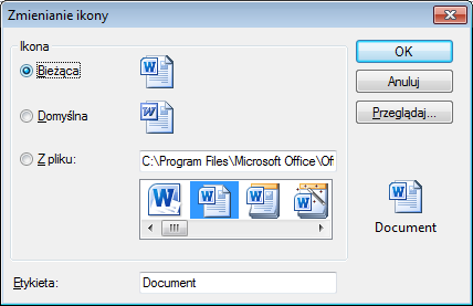 Wyświetla okno dialogowe Przeglądaj (standardowe okno dialogowe wyboru plików), w którym można wybrać ikonę z pliku.