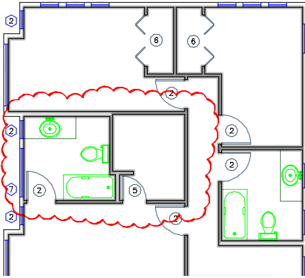 Chmurki wersji są poliliniami składającymi się z segmentów łukowych. Są one używane do zwracania uwagi na części rysunku.