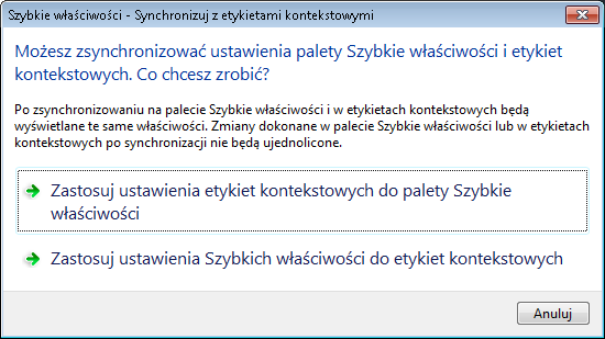Aby zsynchronizować szybkie właściwości z etykietami kontekstowymi