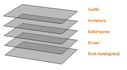 Można korzystać z warstw, aby kontrolować widoczność obiektów i przypisywać właściwości takie jak kolor czy rodzaj linii. Obiekty na warstwie na ogół przyjmują właściwości warstwy. Można jednak zastąpić dowolną właściwość warstwy obiektu. Jeśli na przykład właściwość kolor obiektu jest ustawiona na JAKWARSTWA, obiekt jest wyświetlany w kolorze warstwy. Jeśli kolor obiektu jest ustawiony na wartość Czerwony, obiekt jest wyświetlany jako czerwony niezależnie od koloru przypisanego do warstwy.