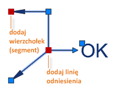 Menu uchwytów są wyświetlane po zatrzymaniu wskaźnika nad grotem strzałki i uchwytami linii odniesienia. Z poziomu tych menu można dodać segmenty linii odniesienia lub dodatkowe linie odniesienia.