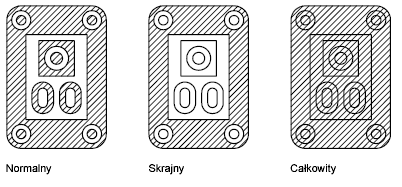 Zamknięte obszary lub obiekty tekstowe wewnątrz obwiedni kreskowania są traktowane jako wyspy.