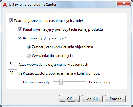 Określa, czy są wyświetlane komunikaty pomocy i wskazówki.