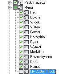 4. W panelu Dostosowywane pliki: <nazwa pliku> kliknij znak plus (+) obok węzła Menu, aby go rozwinąć.