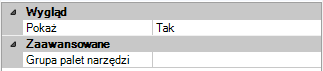 7. Na panelu Właściwości, w sekcji Zaawansowane, w polu Grupa palet narzędzi kliknij listę rozwijaną i wybierz grupę palet narzędzi, którą chcesz przypisać do karty wstążki.