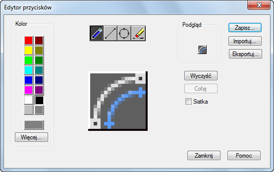 Tworzy linie z użyciem bieżącego koloru. Kliknij i przeciągnij, aby określić punkt początkowy i narysować linię. Zwolnij przycisk aby zakończyć linię.