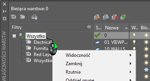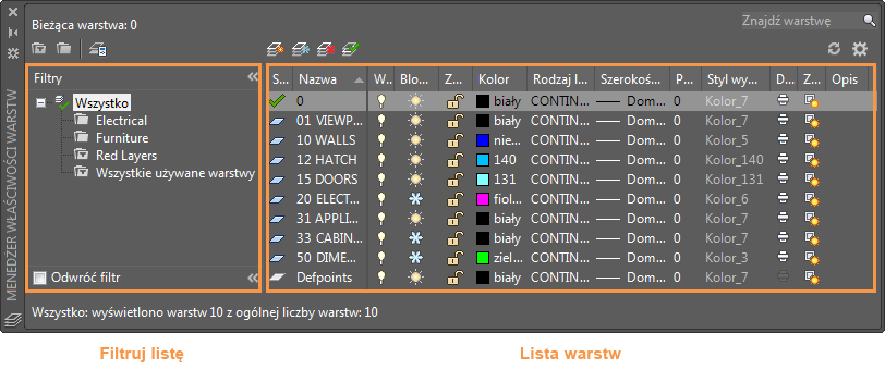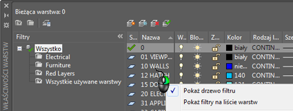Wyświetla listę filtrów warstw zdefiniowanych w rysunku. Kliknij przycisk
