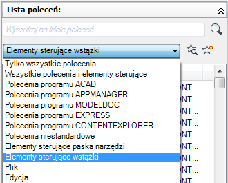 Na panelu Lista poleceń jest wyświetlana tylko lista elementów sterujących paska narzędzi.