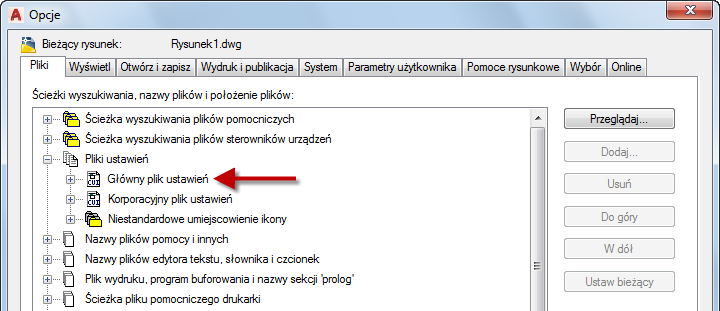 Zmiany wprowadzone w profilach użytkownika są przechowywane w rejestrze systemu Windows i podlegają migracji. Uwaga: Niedostępne w programie AutoCAD LT.