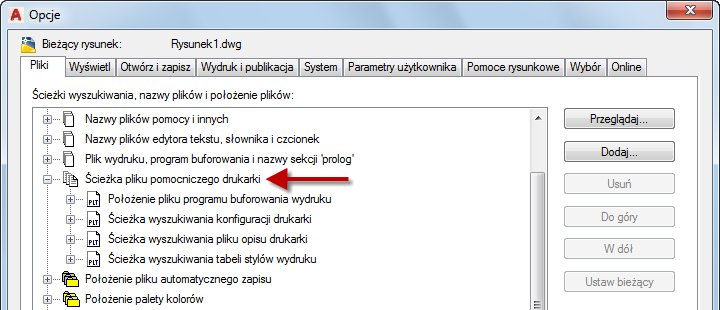W plikach wydruku są przechowywane różne ustawienia sterujące drukowaniem pliku rysunku, w tym na ploterach i drukarkach, które określają wygląd szkicu na wydruku.
