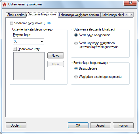 Ogranicza ruch kursora do określonych kątów biegunowych. (zmienna systemowa AUTOSNAP)