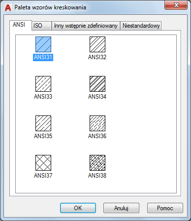 Wyświetla wszystkie wzory inne niż ANSI i ISO dostarczone z programem.