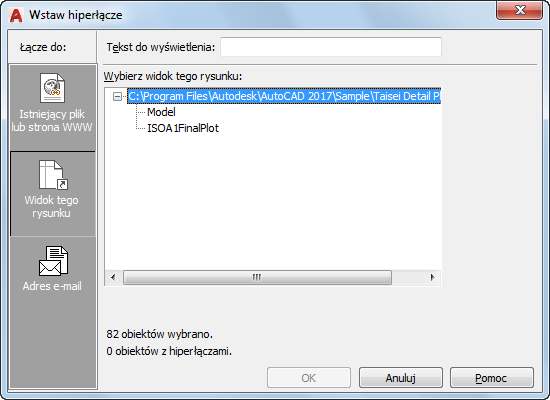 Otwiera okno dialogowe Wybierz miejsce w dokumencie umożliwiające wybranie nazwanego położenia na rysunku, dla którego ma zostać utworzone połączenie.