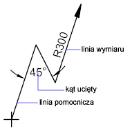 Określa kąt odcinka poprzecznego linii wymiarowej w wymiarze uciętego promienia. (DIMJOGANG — zmienna systemowa)