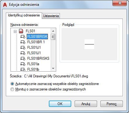 Aby wybrać odniesienie do edycji, wskaż jeden z obiektów w odniesieniu. W przypadku wskazania obiektu stanowiącego część jednego lub kilku zagnieżdżonych odniesień zagnieżdżone odniesienia są wyświetlane w oknie dialogowym.