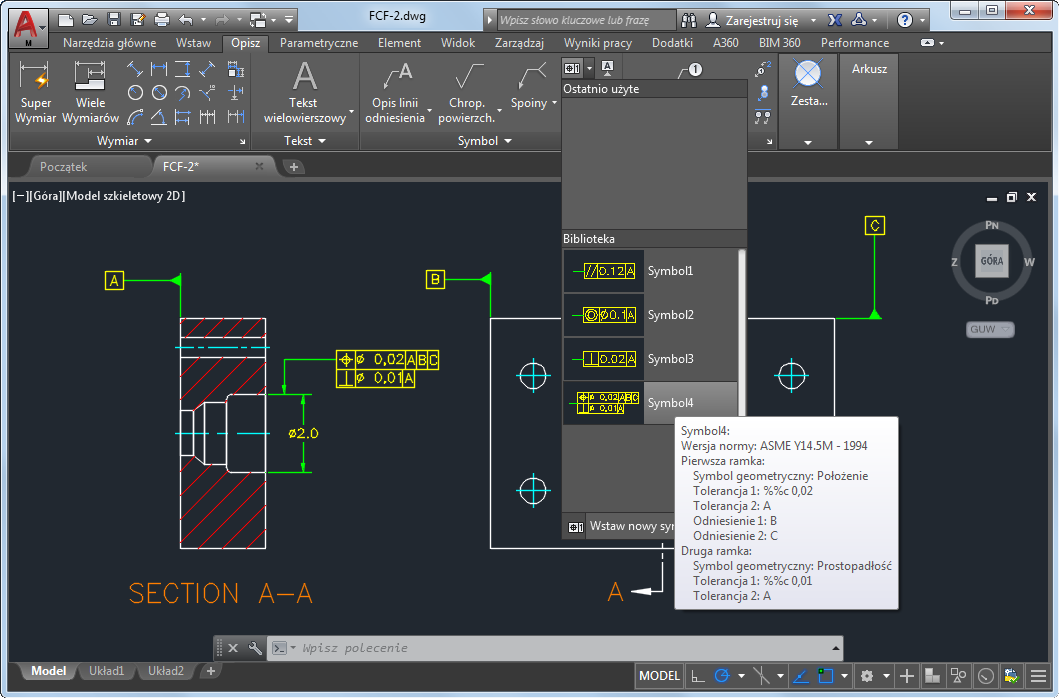 Korzystając z bibliotek symboli, można w wygodny sposób wstawiać w rysunku często używane symbole.
