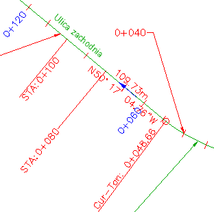 Zmodyfikowany stan po przeciągnięciu: etykieta pikiety głównej 0+040