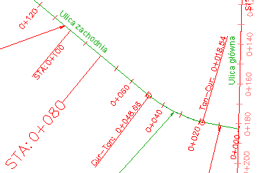 Style etykiety macierzysty (STA: 0+100) i pochodny (STA: 0+080)