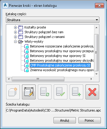 W oknie dialogowym można wybrać do dalszej pracy katalog rur albo katalog struktur i nawigować po kategoriach w ramach wybranego katalogu.