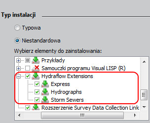 Aby zainstalować rozszerzenie Survey Data Collection Link Extension, należy zaznaczyć odpowiednią opcję. Jest ona zaznaczona domyślnie w przypadku instalacji typowej.
