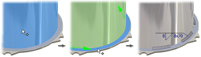 Kliknij Kierunek wypełniania. W oknie graficznym kliknij krawędź lub powierzchnię w celu określenia kierunku spawu.