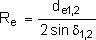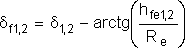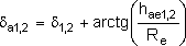 A 1,2 = R e cos δ 1,2 - h ae1,2 sin δ 1,2 |