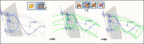 Przeciągnięcie. Polecenie Przeciągnięcie umożliwia automatyczny wybór profilu modelu utworzonego w Etapie 6, ponieważ jest to jedyny zamknięty profil w modelu.
