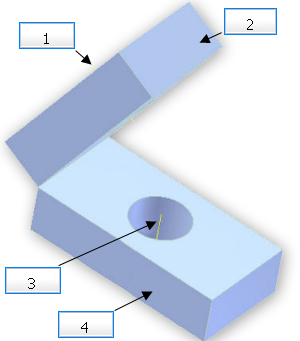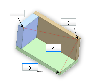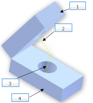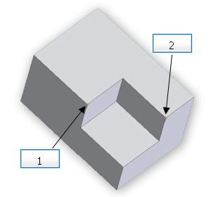 Można oczekiwać, że pomiar zostanie wykonany tak, jak gdyby osie były liniami nieskończonej długości, na skutek czego wynik pomiaru odległości równałby się zeru. Jeśli jednak użyjemy funkcji Measure.MinimumDistance, pomiar odległości następuje pomiędzy najbardziej zbliżonymi punktami końcowymi obu znaczników reprezentujących lokalizację osi. Dzięki temu mierzona jest odległość pomiędzy liniami ograniczonymi, a zwrócona wartość wynosi 1.36 cala.