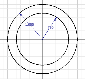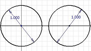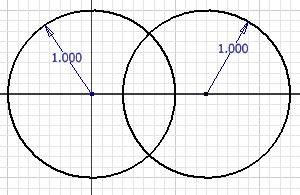 Aby uzyskać inny wynik, można ręcznie wydłużyć linie reprezentujące osie otworów. W tym wypadku funkcja Measure.MinimumDistance zwraca wartość 0 cali, jak można oczekiwać dla przecinających się linii.