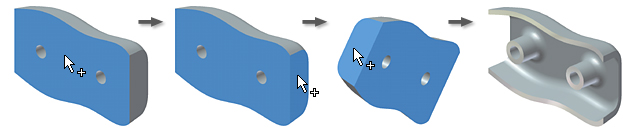 Użytkownik może tworzyć zaokrąglenia, które są oparte na wybranych krawędziach, zaokrąglenia powierzchni pomiędzy dwoma przyległymi powierzchniami lub zestawami powierzchni lub zaokrąglenia z zachowaniem styczności o zmiennej wartości promienia, które są styczne względem trzech sąsiadujących ze sobą powierzchni lub zbiorów powierzchni.