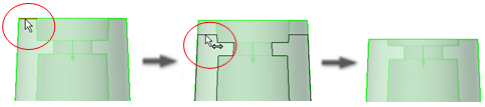 Element ten może istnieć tylko wtedy, gdy może rozciągać się do powierzchni bryły docelowej części znajdującej się po przeciwnej stronie względem punktu umieszczenia w kierunku kominka. Element ten automatycznie określa najbliższą powierzchnię bryły, do której może zostać wydłużony. Można również wybrać inną docelową bryłę i odwrócić kierunek.