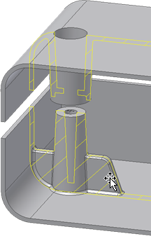 Element Kominek można umieszczać w punkcie środkowym na powierzchni łba i gwintu. Kominek jest wówczas wydłużony do kolejnej powierzchni docelowej części bryły. Aby zaprojektować dwa dopasowane komponenty w dwóch przeciwległych bryłach, należy użyć elementów takich samych, lecz o przeciwnych kierunkach.