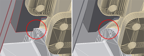Ponieważ dane siatki są prezentowane w formie trójkątów, eksportowana rozdzielczość danych ma wpływ na sposób wyświetlania i interpretację danych w opisach rysunków. Wierność wyświetlania geometrii siatki jest różna i zależy od rozdzielczości danych oraz rodzaju dokumentu programu Inventor, w którym jest używana.