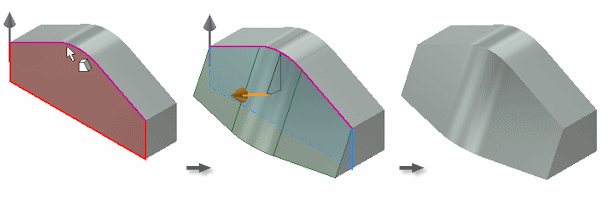 Można utworzyć pochylenie ściany stałej krawędzi lub płaszczyzny, pochylenie ściany linii podziału lub powłokę.