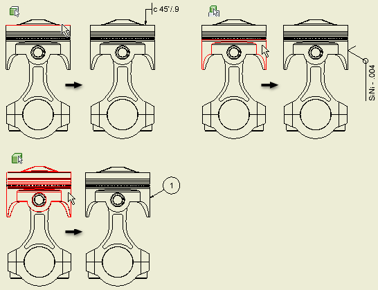 Ustawia polecenie tak, aby można było wybierać geometrię szkicu używaną do tworzenia elementów. Można wyróżniać i wybierać szkice lub poszczególne krzywe definiujące szkice.