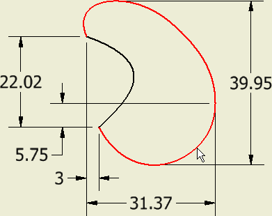 Za pomocą polecenia Pobierz wymiar w rysunku można naprawić wymiary zastosowane dla splajnu w modelu. Jednak pobrane opisy nie mogą się znaleźć w krytycznych położeniach wymiarów, takich jak szerokość minimalna i maksymalna.