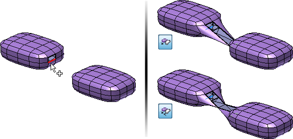 Użycie polecenia Dopasuj krawędź pozwala zmodyfikować bryłę swobodną w celu dopasowania jej do istniejącego modelu lub geometrii szkicu.