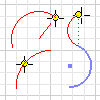 Narzędzie Łuk służy do tworzenia łuków poprzez ustalenie trzech punktów — punktu środkowego i dwóch punktów końcowych.