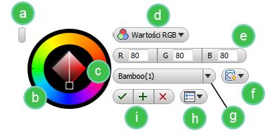 - tryb koloru RGB lub HSB (barwa, nasycenie, jasność),