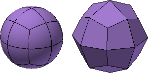 . Tryb blokowy powoduje wyświetlanie kształtu przy użyciu punktów sterujących bryły swobodnej. Użycie trybu gładkiego powoduje wyświetlanie zaokrąglonego kształtu bryły swobodnej. Podczas korzystania z opcji Edytuj kształt, zaleca się pracować w trybie blokowym. Tryb blokowy ułatwia wykrycie problemów z modelowaniem, takich jak nakładające się krawędzie, które mogą nie być widoczne w trybie wygładzania.