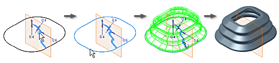 Możesz użyć otwartego lub zamkniętego profilu, aby utworzyć powierzchnię, która może być użyta jako powierzchnia konstrukcyjna, lub by ułatwić opracowywanie form złożonych.