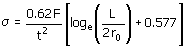 r 0 = promień powierzchni, do której przyłożone jest obciążenie. Jeśli r 0 < 1,7t, użyj r s gdzie r s = √(1,6r 0 2 + t 2 ) - 0,65t.